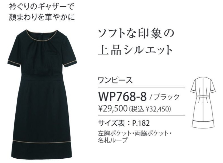 ソフトな印象を醸しだす上品なシルエットのワンピース。 衿ぐりのギャザーで、顔まわりを華やかに写しだします。 上質なストレッチ素材で、優れた吸汗・速乾性、制電防止の機能素材。