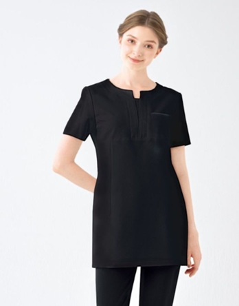 ちょっぴり大人気分の上品チュニック。すっきりとしたV開き衿は女性の首もとをキレイに見せてくれます。胸あて付きなのでインナーを気にする心配もありません。柔らかなスカーフ(E-3117)を合わせる事でさらにフォーマル感をアップさせる事が出来ます。